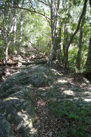 根っこが グジャグジャ と 地表を はってます。 すぐ下は 岩ってこと??